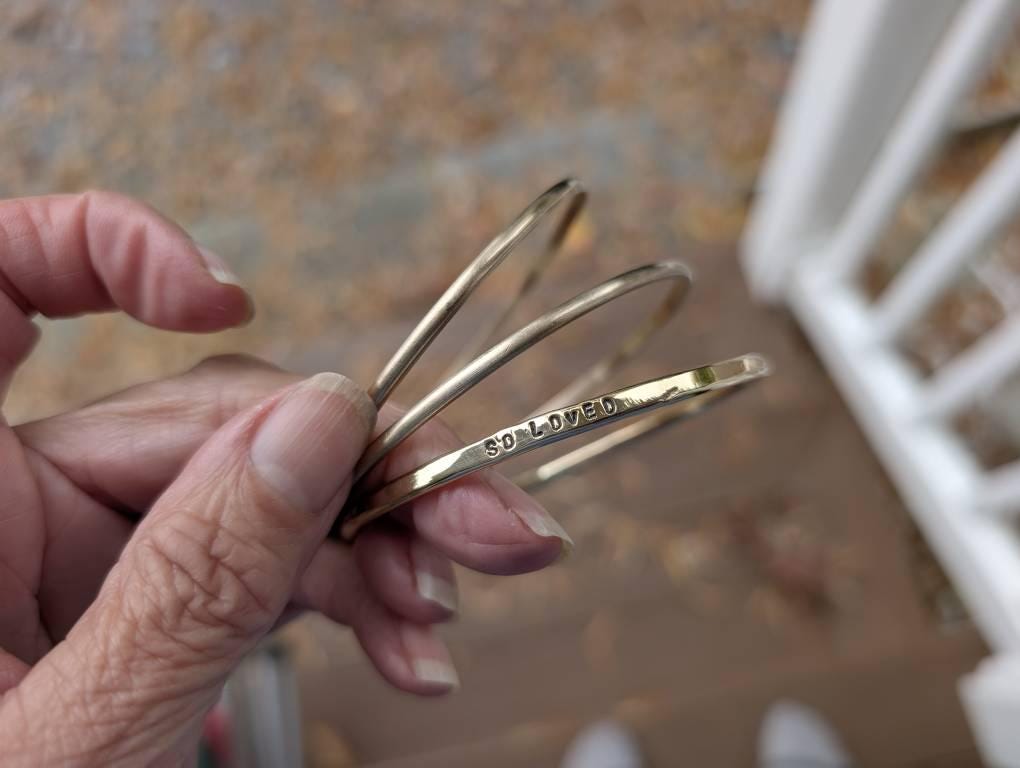 My son lost his dad at the age of 14. He will marry next month. I had this bracelet made for my his bride. It will accompany these 2 bangles that were the first gift that my late husband ever gave me decades ago. It's perfect. Thank you.